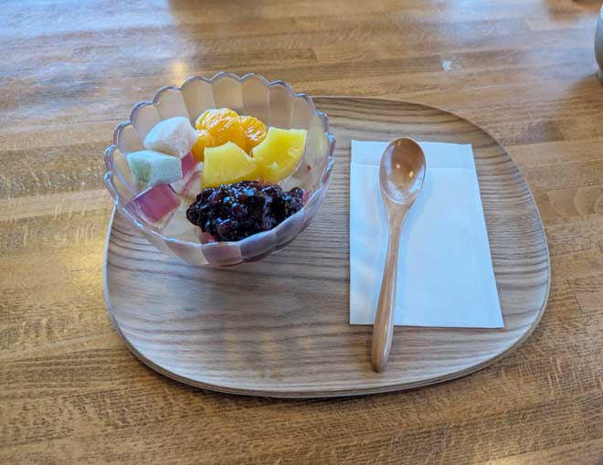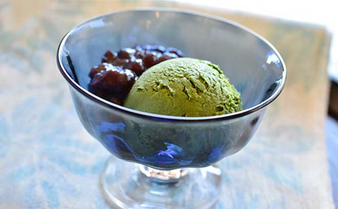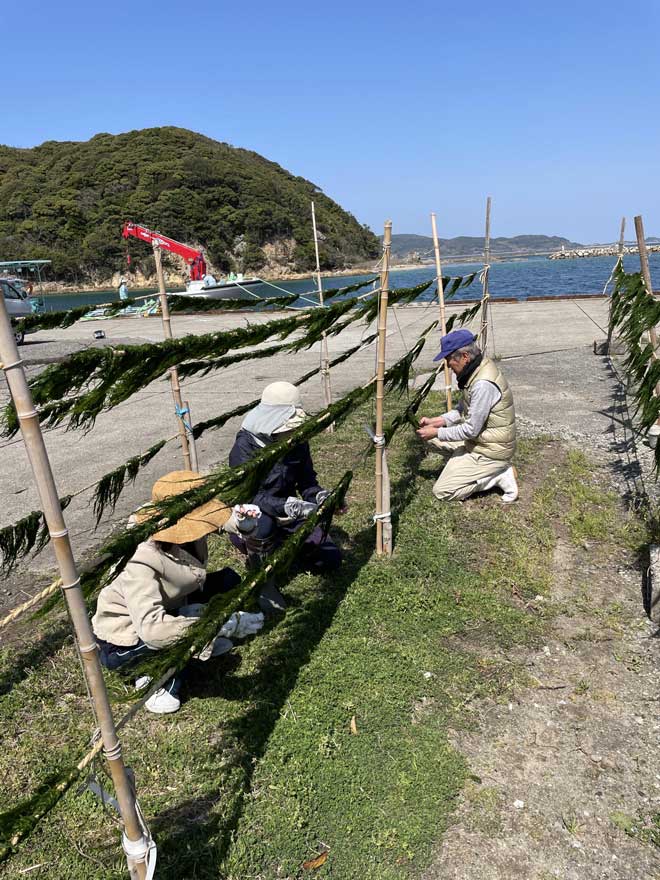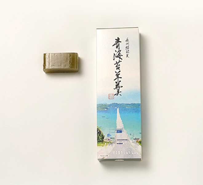 すぐそばを流れる粟野川は、清流として名高く、シロウオや青海苔で知られています。大正7年、初代・満畑仁助さんは「この地の恵みをお菓子に」という思いから青海苔羊羹を生み出し、創業されました。以来100年以上にわたり、代々受け継がれる伝統とこだわりが息づいています。今回、代表取締役の満畑仁志さんを訪ね、地域とともに歩むだるま堂の魅力を伺いました。お店よりも先にまず食べてもらいたい地元の食材があったというお話は大変感銘を受けるものでした。ご祖父様、お父様、そして満畑さんへと代々受け継がれてこられました。私は青海苔を使った甘いお菓子が苦手だったのですが、こちらの羊羹は甘さと薫り高い青海苔の風味の調和が見事で、磯臭さの一切ないすっきりとした後味のおいしさに思わずお土産にする予定だったものも食べてしまいました。お店の礎ともいえる青海苔は、お店の方たち自身で収穫し作り上げるという特別なこだわりが息づいています。青海苔が成長し漁が解禁されるのはとても寒い時期で、流れ込む雪解け水で川の水は一層冷たいものになり、その後収穫した青海苔を手作業で一つ一つ天日干しにされるそうです。お話を聞いただけでもとても大変な作業だと思いました。無理を言って見せていただいた青海苔は緑が濃く大変美しい色合いで香りもまた格別でした。この青海苔、収穫時期にはお店で販売されることもあるそうです。その他のお菓子も羊羹と同じ青海苔を使った求肥餅「白羽川」、お店から望める油谷湾の海水から手作業で作られる「百姓の塩」を使った「百姓の塩羊羹」、地元豆腐店の豆乳を使った「お菓子とうふ」等々、地元への愛情のこもったお菓子が手入れの行き届いたきれいな店内に並びます。ほかにもお菓子に使われる塩や特産品も販売されていてここでもまた地域とのつながりを感じました。また店内の喫茶では隣接する工房で作られた出来立てのお菓子、季節ごとの店内限定メニューを楽しむ事ができます。手作りをしていると伺って、「抹茶あいす」をいただきました。上質な抹茶に甜菜糖、卵、生クリームだけで作られたこだわりの逸品です。さっぱりと頂けたので続けて「あんみつ」もいただきました。先ほどの白羽川と赤米を使った求肥「赤米もち」の入ったこちらもこだわりの詰まった一品でした。近年は会計や勤怠管理のDX化に取り組まれ、今後は太陽光発電による省エネなど環境へも取り組みたいと伺いました。従業員の方や環境への優しさは自然の恵みと二人三脚で歩んで来られたからこそ培われたものなのではないでしょうか。