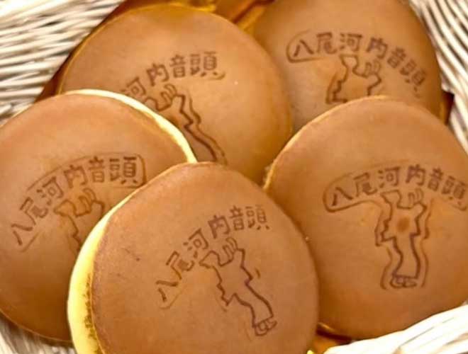 二つ目は、彼の地元、八尾の老舗和菓子屋「お菓子司三日月」の『八尾河内音頭枝豆どら焼き』八尾といえば河内。河内といえば河内音頭というわけです。八尾特産の枝豆のペーストと白あんのアンサンブルが絶妙のおいしいどら焼きです。三つめは、「明月堂」の『吉本新喜劇人形カステラ』はちみつをたっぷり練りこんだカステラを吉本新喜劇のスター芸人たちの形に焼き上げた物。大阪といえばコレ!…といった具合です。どうでしたか?