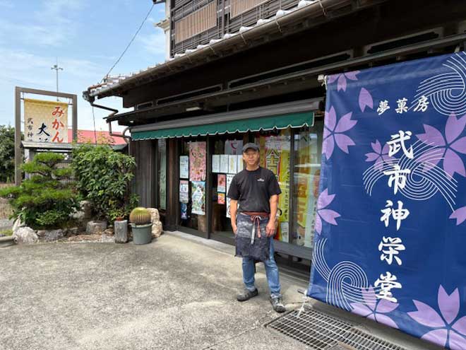 今回ご紹介させていただくのは高知県香南市の武市神栄堂で販売しておりますお菓子「山北みかん大福」です。この商品はいまから12年ほど前の平成25年に開発されたものとなります。