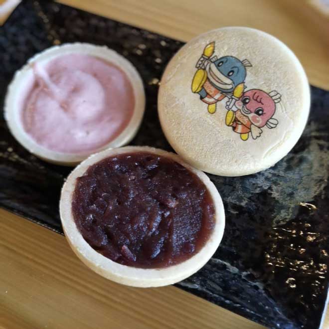 最中餡と「みおしずく」を使ったマシュマロを最中種ではさみ、最中種の表側に「わたSHIGA輝く国スポ・障スポ2025」のキャラクターをプリントした商品です。