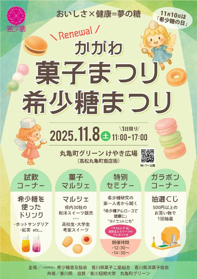 今年も11月8日(土)イベント満タンクの時期に開催される香川県菓子工業組合青年部の肝いりイベント「かがわ菓子まつり・希少糖まつり」の今回は裏側をちょこっとトークさせて戴こうという…まぁ~正直なところネタがなく私自身も全国あちこちEXILE級の移動が多いこの時期、全国のわたくしの原稿ファンの方々には大変申し訳御座いませんが、文章がいつもより少なめの記事になります事をお許し下さいませ(泣)脱腸の思い…(違)断腸の想いで今回しっかりと裏側をカタルーニャさせて頂きます。