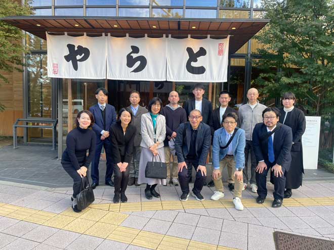 事の始まりは、岐阜おやつ編集室で取り扱いしている「あゆがし図鑑」の購入依頼が虎屋文庫さんからあり、東京に行く予定があったので、興味津々でたずねた事が始まりでした。その後、虎屋文庫の中山様と意気投合して、夏に初めて開催される「鮎菓子マルシェ」のトークショーにゲストとしてお招きし、その日の打ち上げで、岐阜の職人さんとの食事会で盛り上がり、今回の虎屋見学ツアーの話が決まったのです!すごいスピードです。