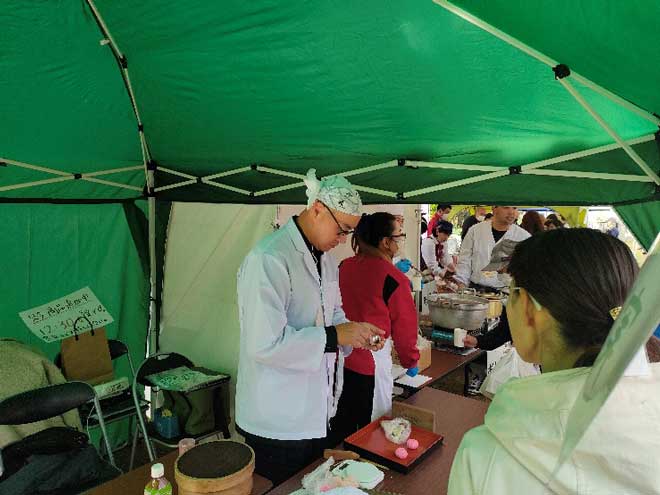 販売が始まると、ものすごい勢いでお客様が商品を取っていきます。1時間しないでほぼ完売してしまいました。すぐさま、追加が可能か各店舗に問い合わせして可能な限り追加頂き、お客様にもお待ち頂き1時間後に再開しましたがやはり30分位で完売となりました。お汁粉の販売も予定していた杯数も1時間ちょっとで完売してしまう盛況ぶりでした。わざわざこのイベントのためにご来場頂いたにもかかわらず、完売で購入できなかった多くのお客様には、大変申し訳ない思いでした。今回のイベントは全てにおいて勉強になりました。反省点も多いですが必ず今後に活かしていきたいと思います。